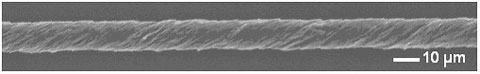 (聚二炔/碳納米管復合纖維的掃描電鏡照片)