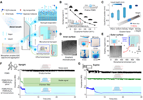 加州理工學院醫學工程系高偉(Wei Gao)教授團隊介紹了一種用于可穿戴式監測呼氣冷凝物的智能口罩創新概念,重點是集成在日?谡稚系柔性微流體裝置(Exhaled Breath Condensate Analysis and Respiratory Evaluation System,EBCare)。該系統設計用于持續冷凝呼出的濕氣、自動捕捉和刷新呼氣冷凝液(EBC)以及實時、原位多重分析生物標記物。鑒于目前在了解和檢測EBC生理方面存在的差距,這種可穿戴的呼氣冷凝物分析技術在應對上述挑戰方面具有巨大潛力,并為探索呼吸中生物標志物的動態組成和生理意義建立了一個通用的研究平臺和范例。該項目的成功實現對EBC中生物標志物的日常和臨床可穿戴監測,為代謝和呼吸健康評估提供一種無創的個人精準醫學方法。相關成果以(A smart mask for exhaled breath condensate harvesting and analysis)為題發表在《Science》上。加州理工學院博士生衡文正為第一作者。