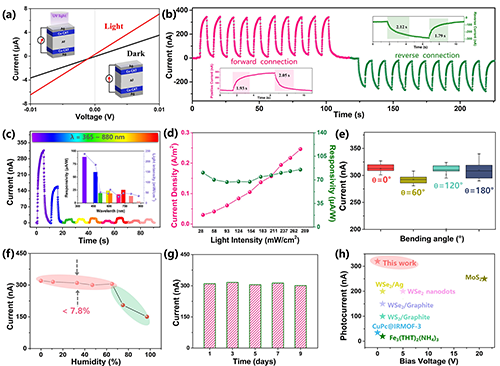 圖3. AF/Cu-CAT用于自供電紫外光檢測(cè)