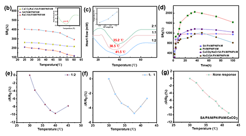 圖4. NaCl/SA/PAM/PNIPAM/CaCO3水凝膠溫敏性能分析