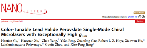 華南師范大學姜小芳教授《Nano Lett.》:基于膽甾相液晶聚合物薄膜的波長可調諧鈣鈦礦圓偏振微納單模激光