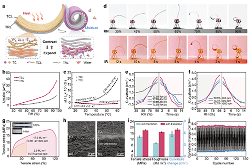 圖3 濕氣響應/溫度可視層TCL的制造策略與性能