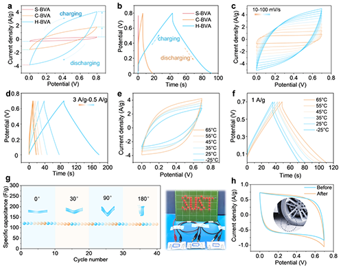 因此,基于IBVA凝膠電解質(zhì)的超級電容器表現(xiàn)出良好的柔韌性、廣泛的溫度適應性、界面穩(wěn)定性和穩(wěn)定的電化學性能(圖5)。