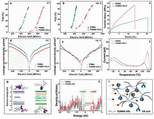 圖4. P(MMA-VN)高電場(chǎng)下絕緣性能與能帶結(jié)構(gòu)表征