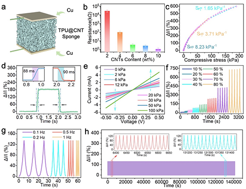 圖3 TPU@CNT海綿的壓阻傳感性能