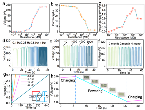 圖5 TC-TENG的摩擦電性能及自供電傳感