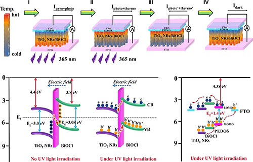 1.唐新生,如仙古麗·加瑪力,吐爾遜·阿不都熱依木*:熱釋電效應增強了TiO2 NRs/BiOCl// PEDOS異質結在紫外光電探測器中的性能