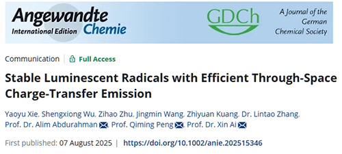 相關(guān)研究成果以“Stable Luminescent Radicals with Efficient Through-Space Charge-Transfer Emission”為題,作為VIP論文發(fā)表在《Angew. Chem. Int. Ed.》上,也被選入Editors'''' Choice: Spotlights。海南大學(xué)謝遙宇和吳勝雄為論文的共同第一作者,海南大學(xué)艾心教授、吉林大學(xué)阿力木教授和南京工業(yè)大學(xué)彭其明教授為論文的共同通訊作者。本研究得到了國家重點(diǎn)研發(fā)計劃(2023YFB3608902)、國家自然科學(xué)基金(22265009, 22105054, 62475116, 62422404, 52103210)、海南大學(xué)協(xié)同創(chuàng)新中心項目(XTCX2022XXC02)、海南省“南海新星”科技創(chuàng)新人才平臺項目(NHXXRCXM202307)、海南大學(xué)啟動基金以及吉林省科技廳(20230101363JC)等項目的支持。