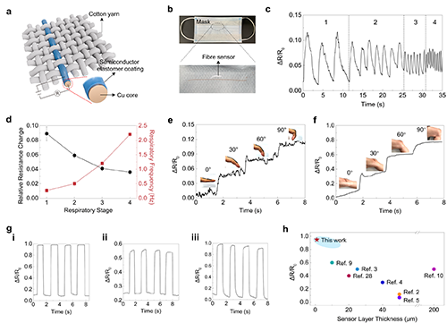 圖5. 均勻超薄半導體彈性體涂層銅纖維的傳感應用。
