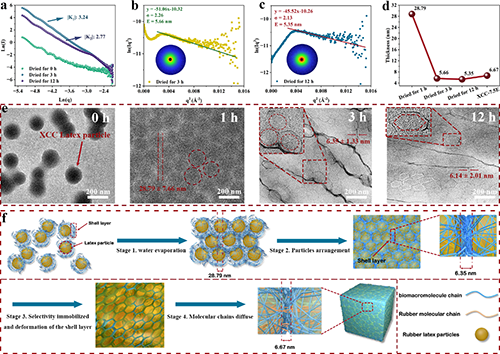 階段4(分子鏈擴散):橡膠鏈通過殼間隙擴散,均質成基質。充分發育的網絡表現出增強的機械性能。