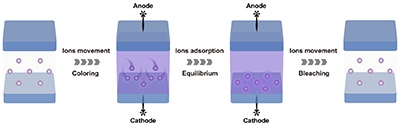 圖1 紫精電致變色器件運(yùn)行示意圖