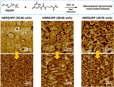 圖1. 超分子動態交聯助力聚乙烯/聚丙烯混合塑料高效回收。