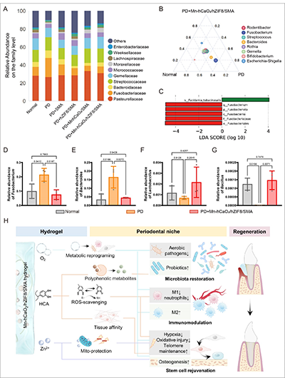 圖7 Mn-hCaO2/hZIF8/SMA水凝膠調節牙周菌群穩態。