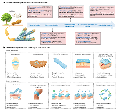 圖 3. 纖維素基系統(tǒng)用于體內(nèi)和體外應(yīng)用的合理設(shè)計(jì)框架及生物功能分化。