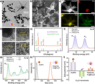 圖2花瓣狀Au-Cu2O的結(jié)構(gòu)表征