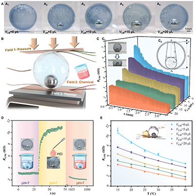 圖2 液態(tài)金屬在機(jī)械壓力、化學(xué)場(chǎng)及溫度場(chǎng)作用下的響應(yīng)行為