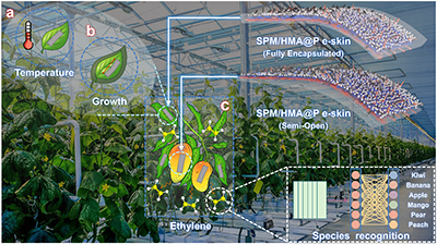 近日,陜西科技大學生物質與功能材料研究所劉新華教授與姜慧娥副教授聯合開發出一種具有“Janus”不對稱隔離結構的多模態柔性電子皮膚(SPM/HMA@P),實現了對植物多模態生理表型參數的原位、精準監測以及采后果品的高精度分類,為智慧農業中的作物狀態連續追蹤與品質評估提供了全新策略。