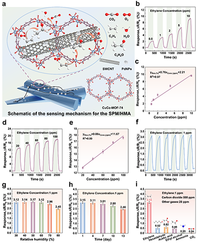 圖6. 半開放構型下SPM/HMA@P電子皮膚的氣敏特性表征