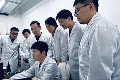 圖4 安承巾與課題組研究生在實驗室共同分析實驗數據,探討課題進展,體現了團隊協作的科研氛圍與嚴謹的學術交流場景