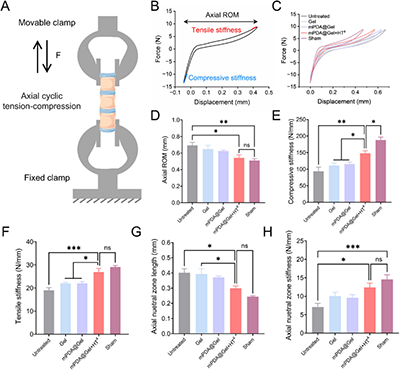 圖4. 熱療水凝膠治療平臺對于IVD生物力學(xué)功能的維持作用。