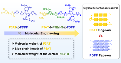 圖1. 分子工程實現共軛嵌段共聚物結晶取向的高效調控。