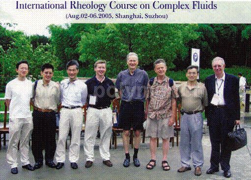 我國流變學會是在科學的春天誕生的。前面提到科學大會已有規劃,說明也有一定工作基礎,分散在各行業的流變學同行有強烈交流愿望,1980年英國流變學家陳文芳博士受聘北京大學力學系教授,他開設的具有國際水平的非牛頓力學講習班,使國內分散的流變學工作者有機會聚在一起,其中幾位同志后來成了中國流變學會初創時期的骨干。1981年我回國后與陳先生有很密切的科研合作。我們串聯了一些優秀人才,在中國化學會理事長錢人元先生和中國力學學會周光炯先生大力支持下,中國化學會和中國力學學會決定成立直屬兩會的二級學會流變學專業委員會。按傳統應由德高望重的影響力大的學術權威,例如錢先生和周先生領導,考慮到新興交叉學科的特點,兩位老先生高風亮節,破格支持讓第一線搞流變學的外籍專家陳文芳教授擔任主任委員,湘潭大學袁龍蔚教授擔任副主任委員,由我擔任秘書長,中科院化學所為掛靠單位。1985年在長沙召開了第一屆全國流變學學術會議,宣布成立流變學專業委員會。來自流體、固體、地質力學,化工、高分子等領域的委員們團結奮斗,八十年代在國內外開展了一系列學術活動,幾年內流變學會會員增至近300人,領域廣泛。并于1987年成為國際流變學協會成員,主辦世界流變學大會“申奧”差一點沒成功。八十年代的初始輝煌中,逐漸也表現出后勁不足。一方面,我國的流變學起步較晚,多年來的國家投入很少,我后來也擔任過流變學會主任委員,感到不像國外,國內以流變學名義難以申請到資助,缺乏實驗室建設積累。更重要是人才不足,這門學科是新興交叉學科。具備扎實深厚多學科基礎青年人才缺乏。一晃眼,二十年過去,國家大變樣,現在是新的一代領導流變學界,我無法在此對近年來國內流變學界現狀作綜合評價,從經驗教訓來看,一個好的學會,要由本學科的最優秀最熱心的人才組成,作為交流爭鳴,團結協作的舞臺,對學科發展可以起強有力的促進作用,否則就不能吸引各方智者投身這一領域,學會也容易邊緣化,高水平的隊伍散到臨近學科。我以年近耳順之年回國工作,只能在流變學領域繼續針對一些不盡人意之處盡微薄之力。除了前述注重物理學與流變學的結合的研究項目,主要是加強與國際學術界的接軌交流和人才培養。2005年,我國流變委員會在上海主辦了第四屆太平洋地區流變學國際會議,我并同美國工程院院士、著名流變學家Macosko教授合作主辦國際復雜流體研討班。他認為,這樣的流變學研討班是具備國際水準的。現在,基本上每兩年由上海交通大學流變學研究所舉行流變學研討班,2009年的會議參加者竟有200人之多,令人十分鼓舞。我國的流變學發展從八十年代開始就有比國外對象廣泛的特點,只要各方人才潛心鉆研,發展出一系列的特色方法,再加強交流,互相借鑒,應能加強深度,提高水平,形成我們自身的優勢。當前,國內大學和科學院下大力氣積極引進年輕才俊,建設軟物質物理,新材料科學與新過程工程的智能設計實驗室,大量企業單位重視制品創新,建設流變學實驗室,這將為流變學發展再創輝煌。