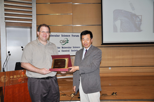 楊振忠副所長為Deming教授頒發“分子科學論壇講座教授”榮譽證書