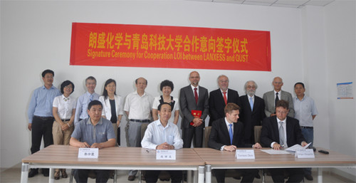 簽字儀式上,朗盛EPDM全球總裁Torsten Derr先生、全球采購物流部總裁Holger Hueppeler先生分別對朗盛近年來在中國的發展及常州Keltan彈性體項目做了介紹,并對進一步加強與青島科技大學的合作提出了新的期待。科技處處長郭仲聚和橡塑重點實驗室主任趙樹高代表學校在合作意向書上簽字。