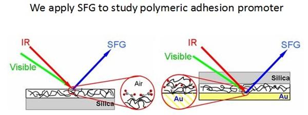 Probinig surface and interfacial molecular structures of a rubbery adhesion promoter using sum frequency generation vibrational spectroscopy