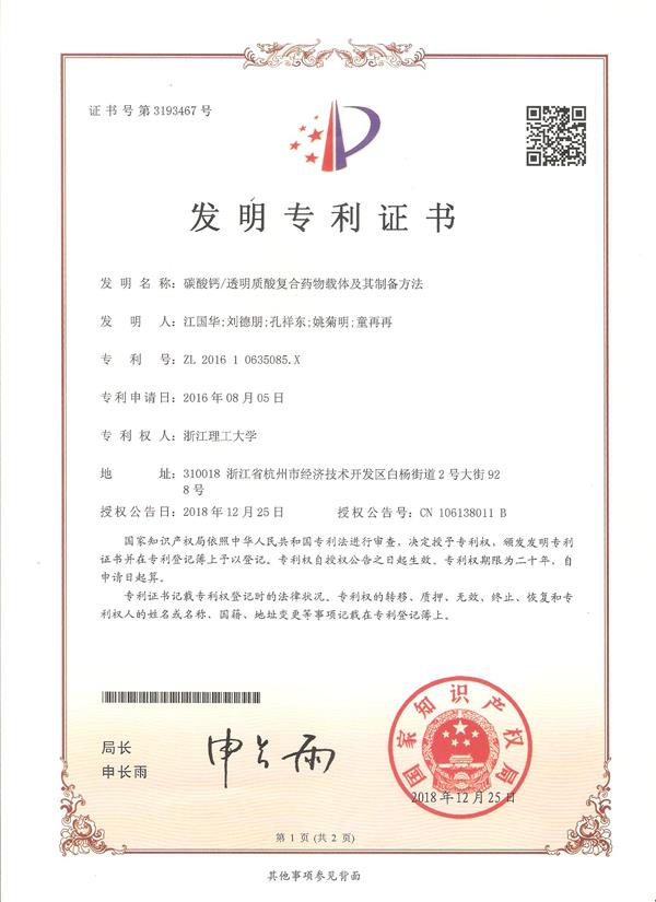 10. 碳酸鈣/透明酸復合藥物納米載體及其制備方法