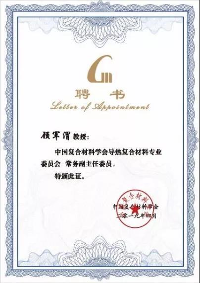 【喜訊】導師顧軍渭教授當選中國復合材料學會導熱復合材料專業委員會常務副主任委員
