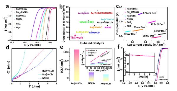 2. 超均勻釕納米團(tuán)簇Ru@NSCSs的HER性能