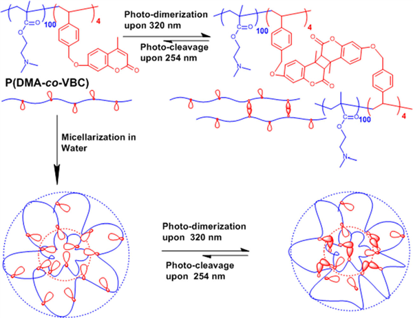 關鍵字:Amphiphilic polymer . Micelles . Coumarin . Reversible photo-dimerization . Hydrophobic association