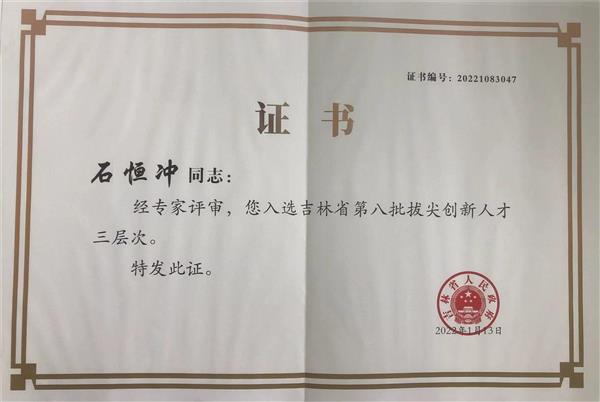 2022年,祝賀欒世方和石恒沖兩位研究員獲得吉林省第八批拔尖創(chuàng)新人才