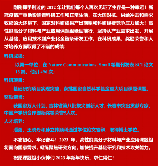 【2023】高性能高分子材料與產業應用課題組新年快樂!