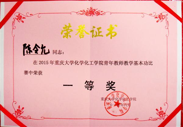 2015年6月獲得化學(xué)化工學(xué)院青年教師講課比賽“一等獎”(第一名)