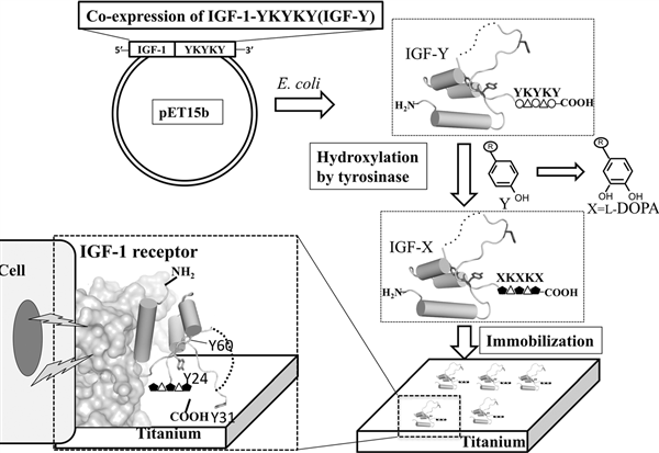 鈦作為醫用材料的一種,主要應用在骨修復,人工關節替代和牙齒種植等方面。盡管鈦具有良好的機械強度并且對組織細胞沒有毒害,但是作為醫用材料鈦金屬不具備表面生物學活性。受海洋貽貝絲足蛋白啟發,通過合作項目研究,張晨博士成功制備出了一種具有粘附能力的生長因子DOPA-IGF-1和具有表面生物活性的醫用鈦材料,新技術研究將為骨科或牙科再生醫學新材料的發展做出重要貢獻,并對臨床治療技術提供了新途徑。該項研究成果主要在日本理研和中科院長春應化所完成,中科院長春應化所和吉林大學是該研究工作的合作單位之一。