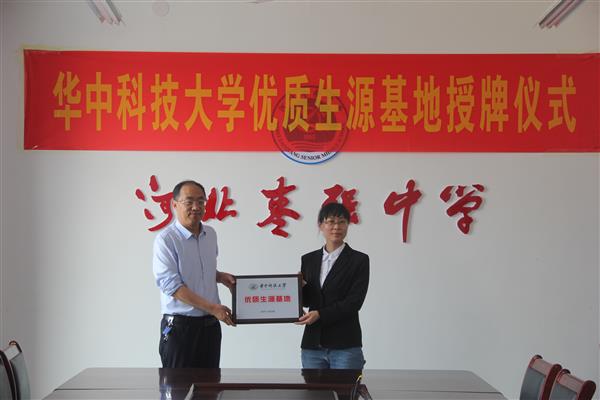 5月21日,牛冉老師回母校河北棗強(qiáng)中學(xué)為高一的學(xué)子做科普講座,并為棗強(qiáng)中學(xué)授予“優(yōu)秀生源基地”的牌子。