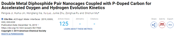 Pengxia Ji, et al. Double Metal Diphosphide Pair Nanocages Coupled with P-Doped Carbon for Accelerated Oxygen and Hydrogen Evolution Kinetics. ACS Appl. Mater. Interfaces 2019.DOI: 10.1021/acsami.9b17960https://pubs.acs.org/doi/10.1021/acsami.9b17960