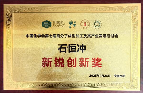 2025年4月26日在合肥召開的中國化學(xué)會(huì)高分子加工成型及其產(chǎn)業(yè)發(fā)展研討會(huì)上,中國科學(xué)院長春應(yīng)用化學(xué)研究所石恒沖研究員獲得 “高分子加工成型及其產(chǎn)業(yè)發(fā)展新銳創(chuàng)新獎(jiǎng)”。
