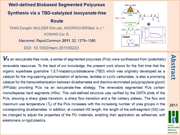 關鍵字:elastomers; isocyanate-free; renewable; segmented polyureas; TBD