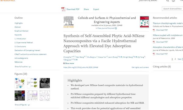 祝賀蔡沖同學(xué)研究工作被 Colloids and Surfaces A接受發(fā)表!!