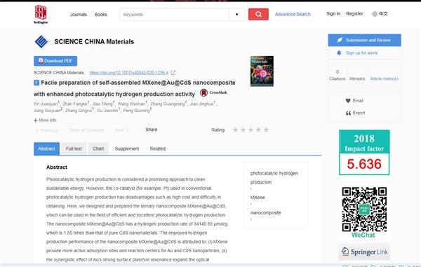 Facile preparation of self-assembled MXene@Au@CdS nanocomposite with enhanced photocatalytic hydrogen production activity