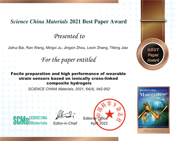 祝賀焦體峰教授論文入選2021年度Science China Materials優秀論文獎??!