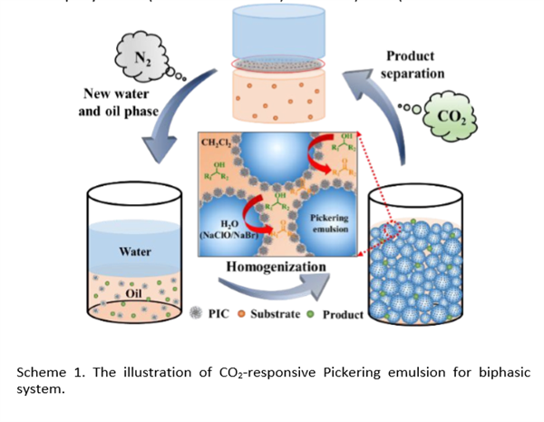 二氧化碳響應(yīng)性Pickering乳液是在具有可調(diào)表面潤濕性的聚合物納米聚集體的基礎(chǔ)上制造的。 靜態(tài)Pickering乳液系統(tǒng)為雙相反應(yīng)中催化劑的原位分離和再利用提供了一個(gè)有效和可持續(xù)的平臺(tái)。