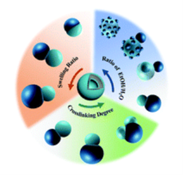 本工作首次報道了基于聚合誘導自組裝的交聯囊泡制備具有中空腔的可形狀可調聚合物Janus納米顆粒。這些新型聚合物JNPs可以廣泛應用,其中需要具有可控空心形態的納米顆粒。