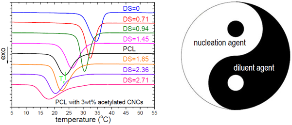 crystallization temperature (Tc) was reported here. Tc of PCL increases evidently in the presence of pristine CNC