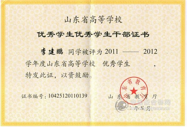 近日,山東省教育廳公布了2011年山東省優秀學生的獲獎學生名單,課題組2012屆畢業生李建鵬榜上有名。同時,李建鵬也獲得了2012年山東省優秀畢業生的榮譽稱號。