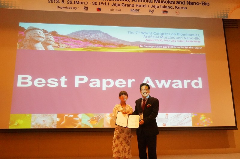Li Ying gave a lecture on Bacterial cellulose / hyaluronic acid nano-composites as a potential biomedical material for wound dressing, and was award the "Best Paper Award" and $ 200 as bonus by the conference organizing committee.