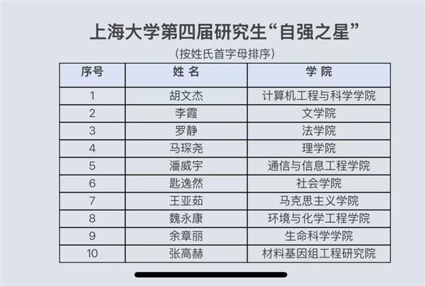 祝賀馬琛堯同學入選上海大學第四屆研究生“自強之星”